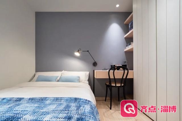 次卧的装修也十分简洁,多了一张小桌子,床和柜子之间也留出了足够的空间。