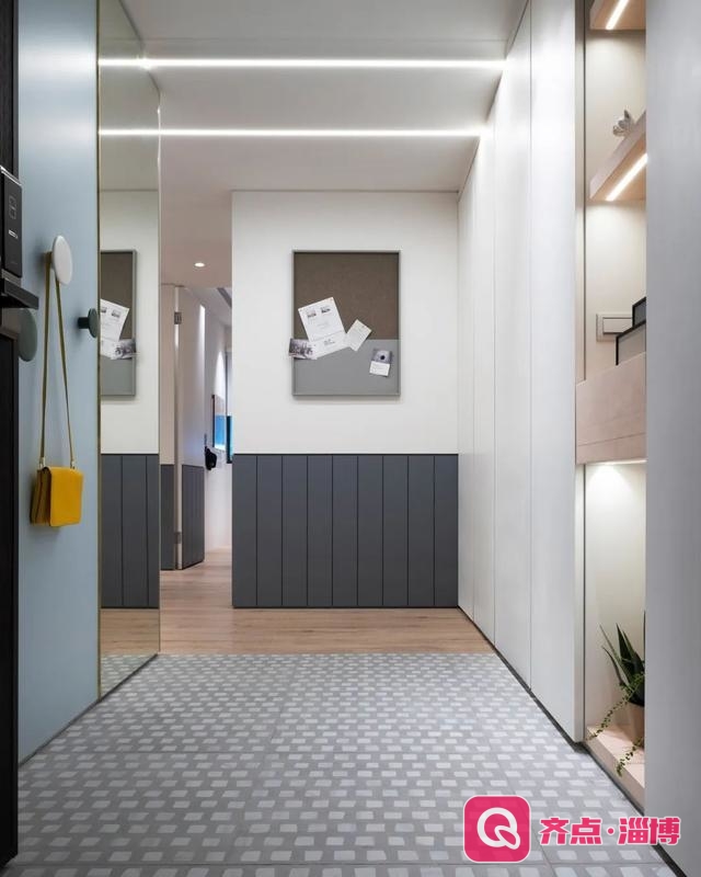 很多人没有注意到,除了鞋柜,全身镜对玄关来说也很重要。出门前检查着装,可以避免很多不适与尴尬。