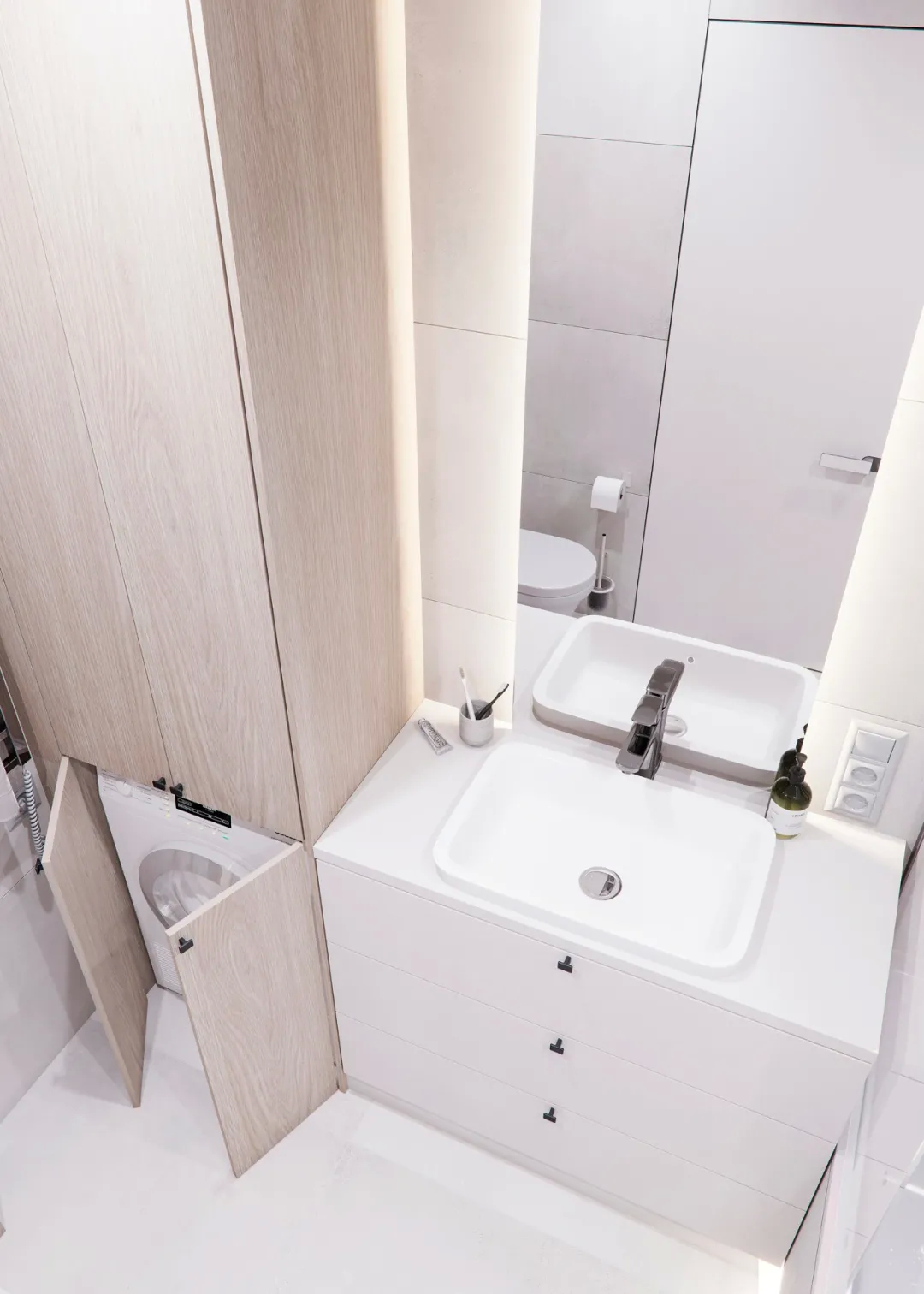 卫生间淡淡的色调充斥着整个空间,给人以柔和温馨的感觉,既扩大了视觉空间又与整个风格十分搭调。