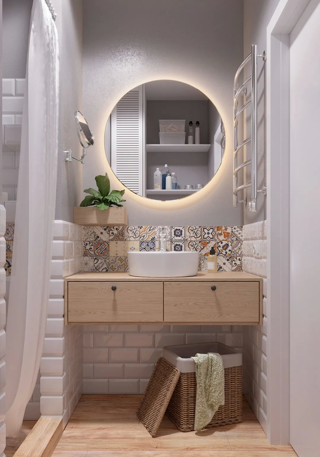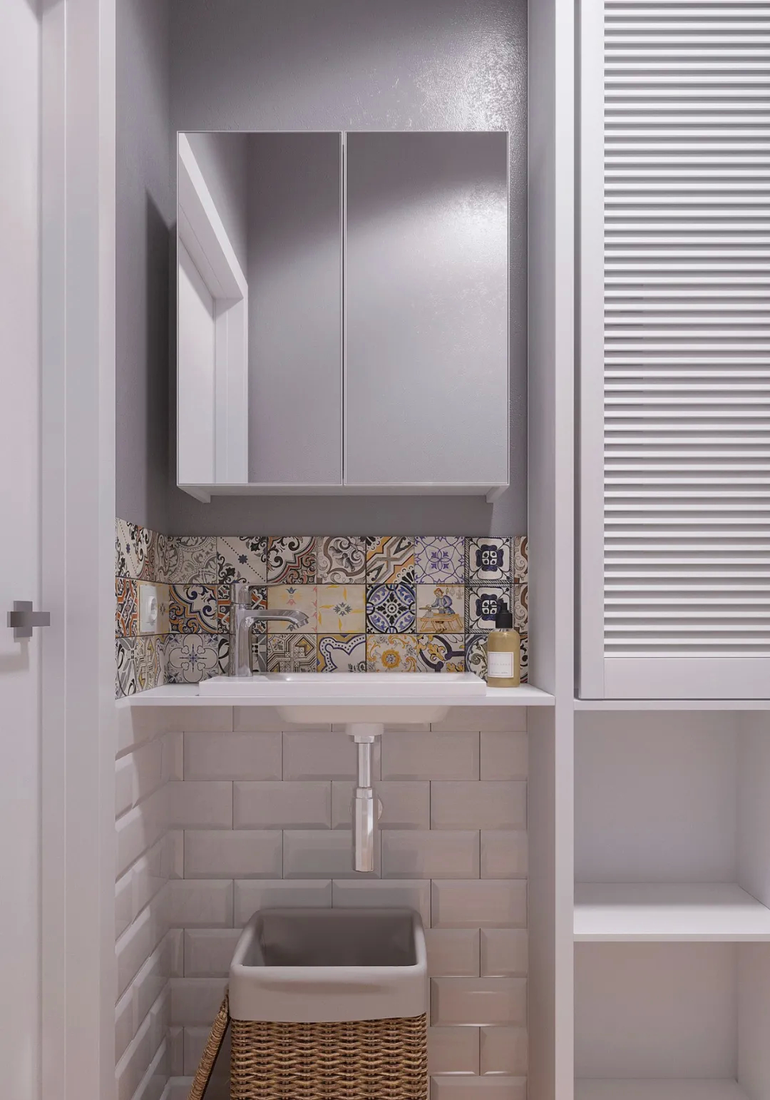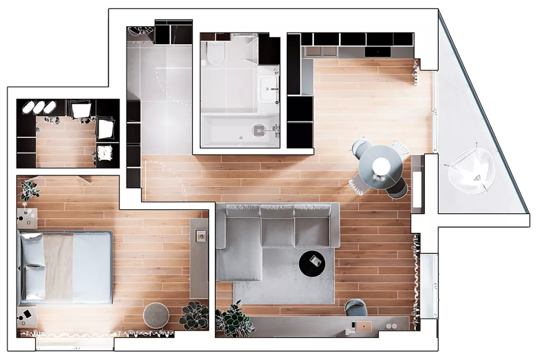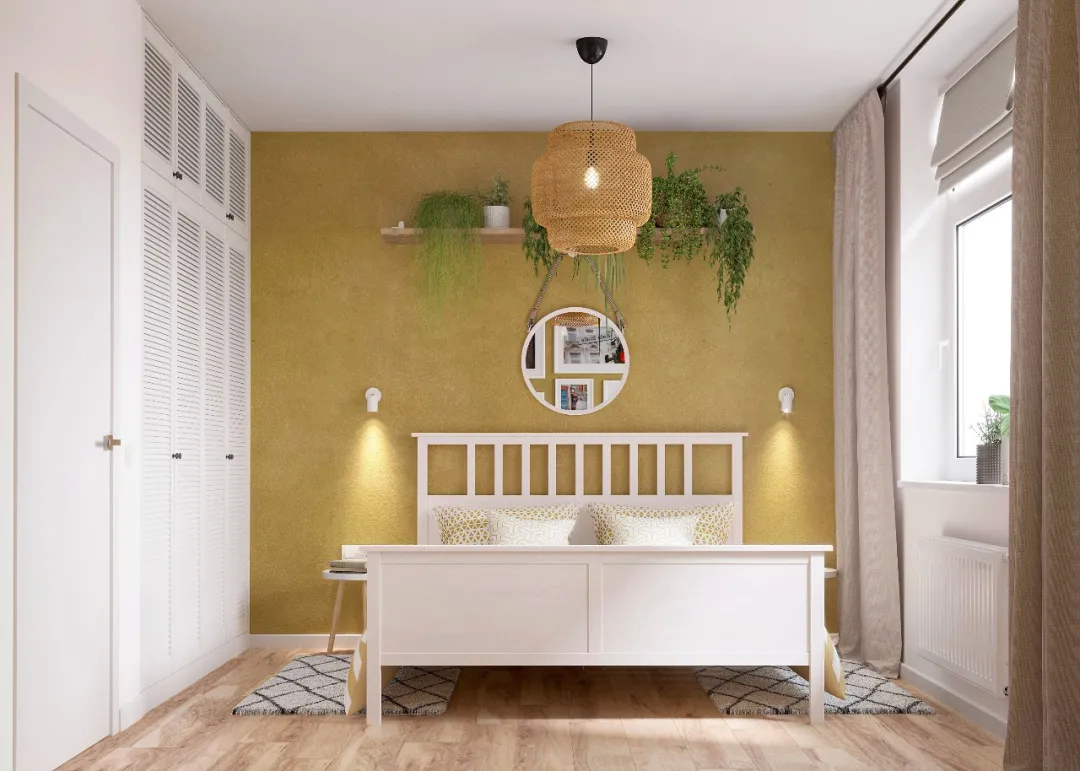 该项目面积59.5平方米,主要任务是为一个年轻女孩创造一个舒适的空间,让她住在公寓里。此外,设计将结合北欧和波西米亚风格的元素与个人喜好相结合,不应该是单色或纯白色。