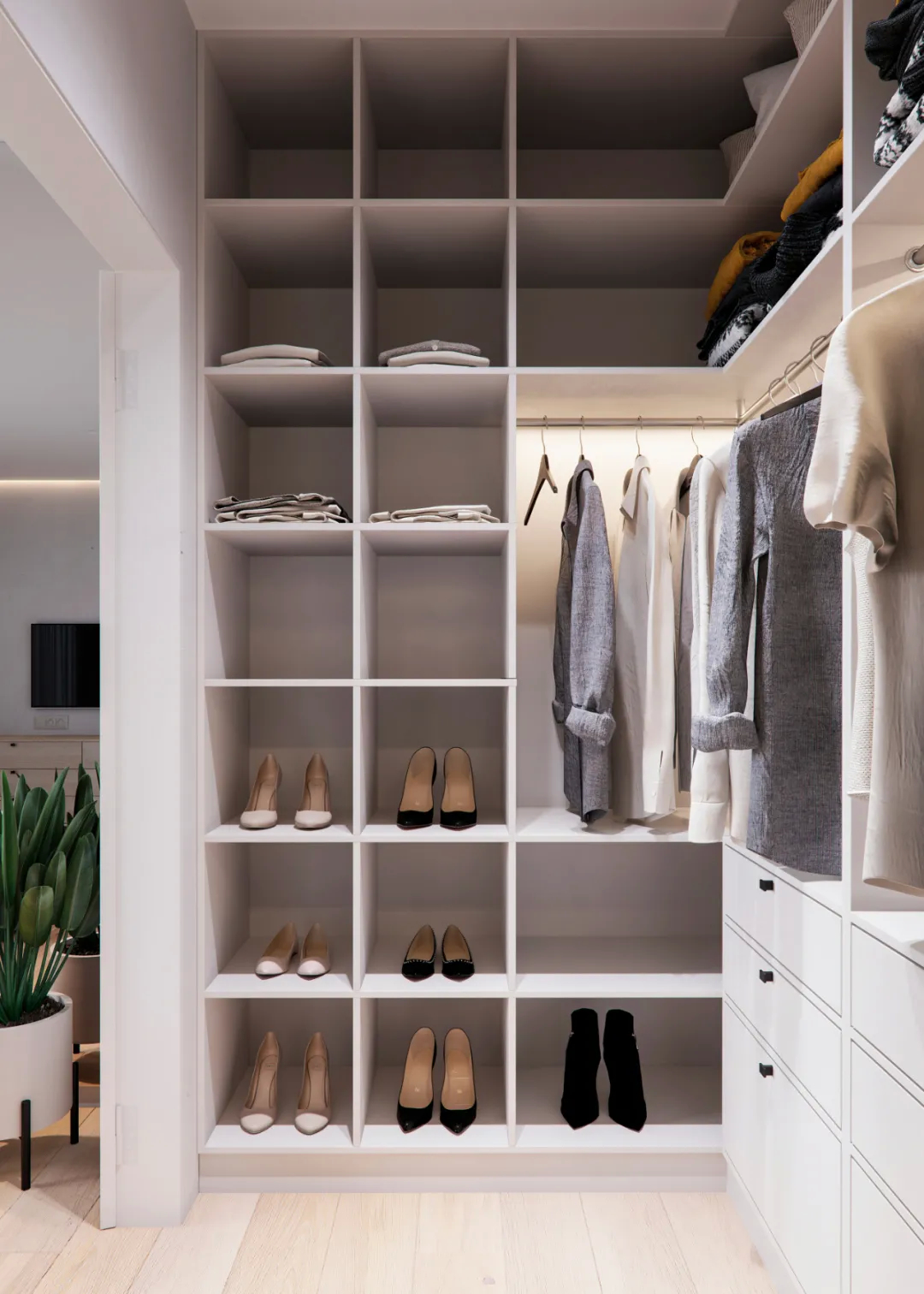 步入式衣柜,满足衣物的收纳。