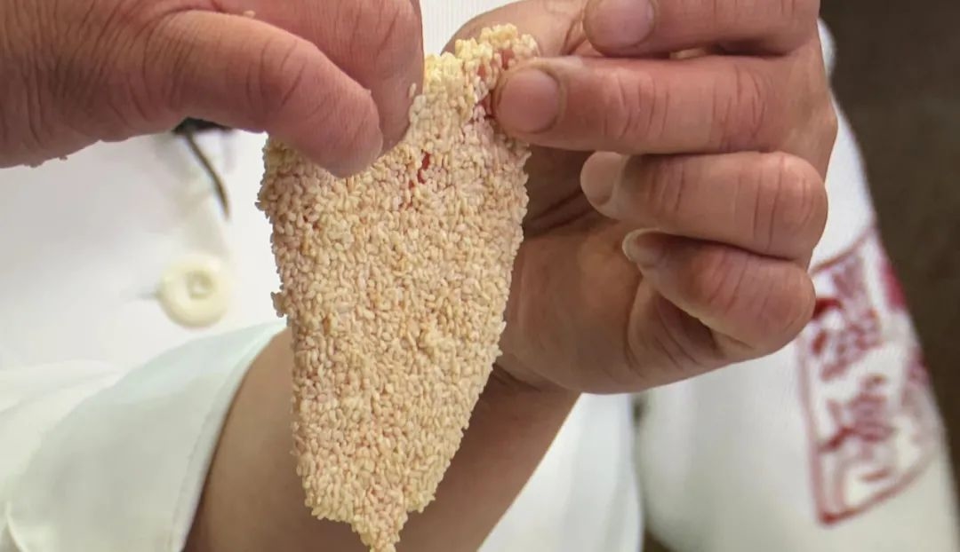 芝麻牛肉获得过中华名小吃和中华名吃的称号,牛肉和白芝麻同样是富含优质蛋白质的食材,牛肉的鲜美与芝麻的香脆结合在一起制作成这样的片状,该是何等酥脆咸香的口感呢?