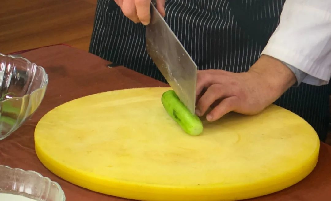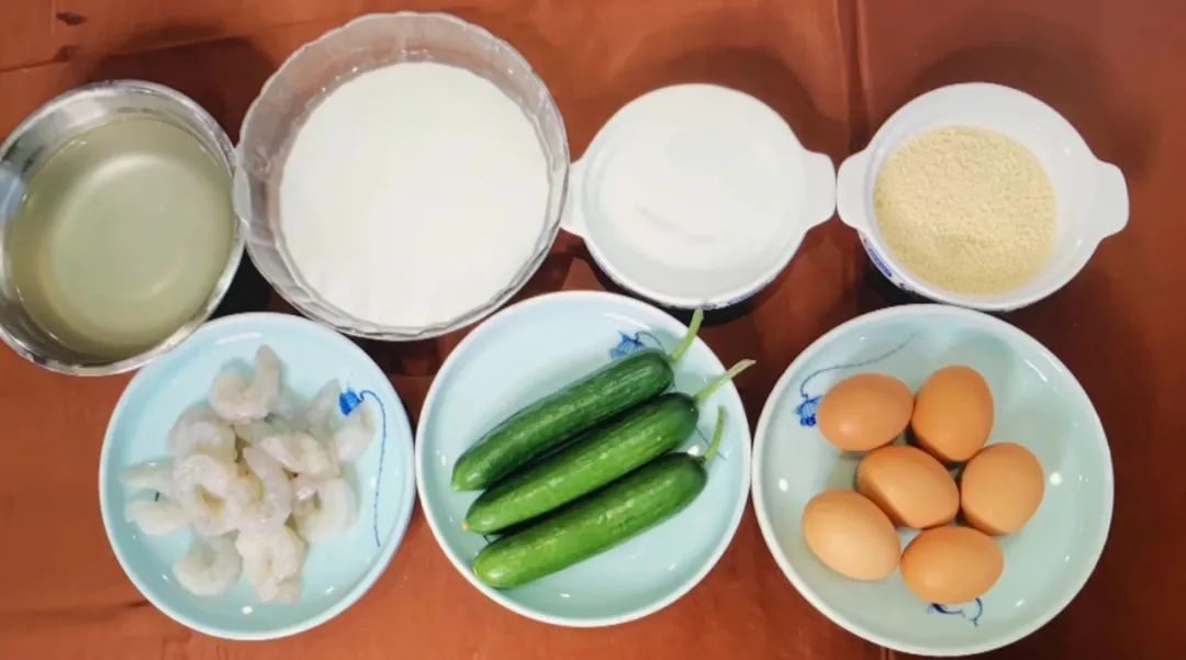 需要用到黄瓜、鸡蛋、虾仁,首先需要黄瓜打皮打皮之后改刀去头去尾,从中间来一刀,用锉刀把中间的瓤去掉,只保留黄瓜的脆度,切成0.7毫米的薄片。