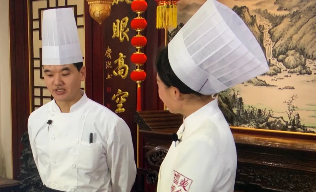 今天我们来到了周村宾馆,有请彭诗亮彭大厨教给大家制作金银蛋炒虾仁。