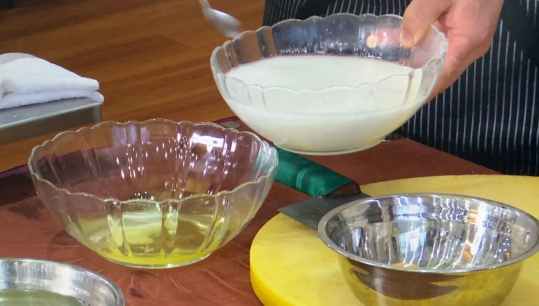 蛋清和蛋黄分开,加点生粉、盐调调味,搅拌均匀,接下来开火,倒一