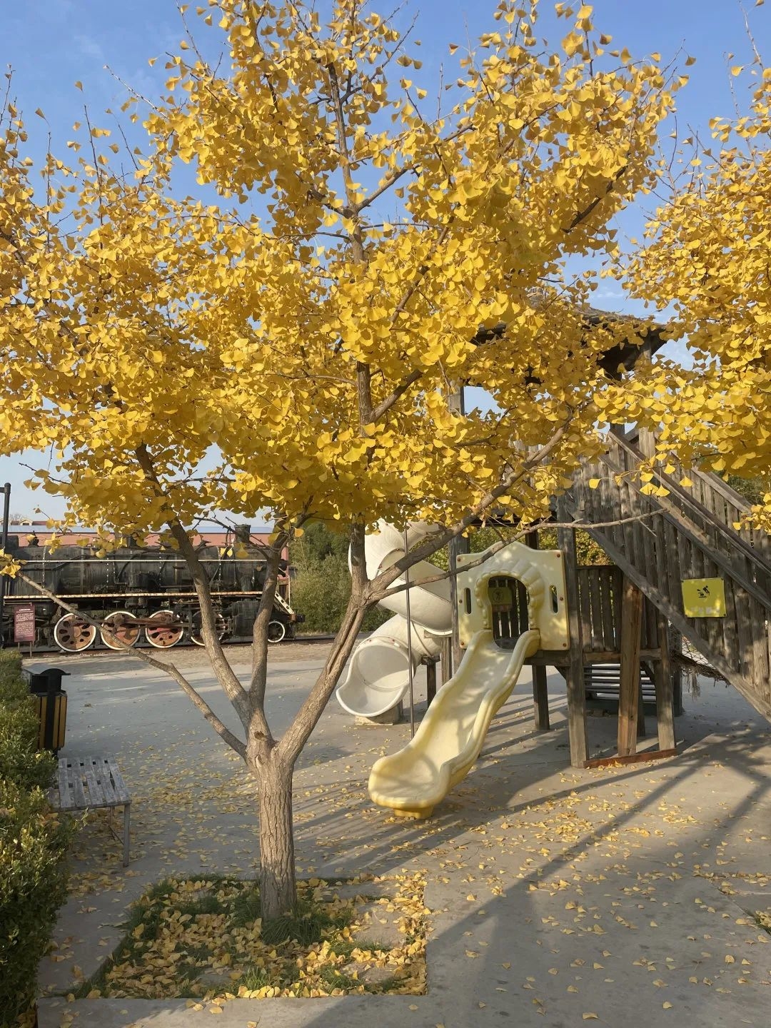 坊子炭矿遗址文化园的银杏树,已经满眼金黄,灿烂如霞,守护历史,低调又深意的告白着这个美丽的秋天。
