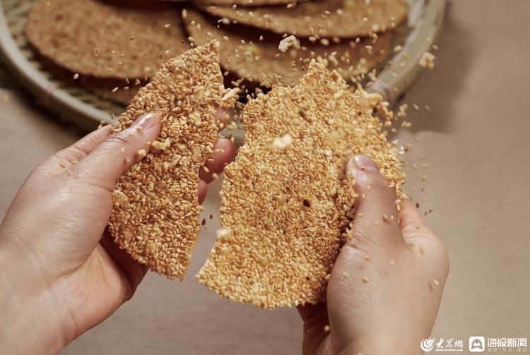 自古以来,文人墨客对这张薄而脆的大酥烧饼赞誉有加,形容其“形如满月,薄如秋叶”。据第五代周村烧饼制作技艺传承人张俊杰介绍,“一片合格的周村烧饼,厚度大约在两毫米。”