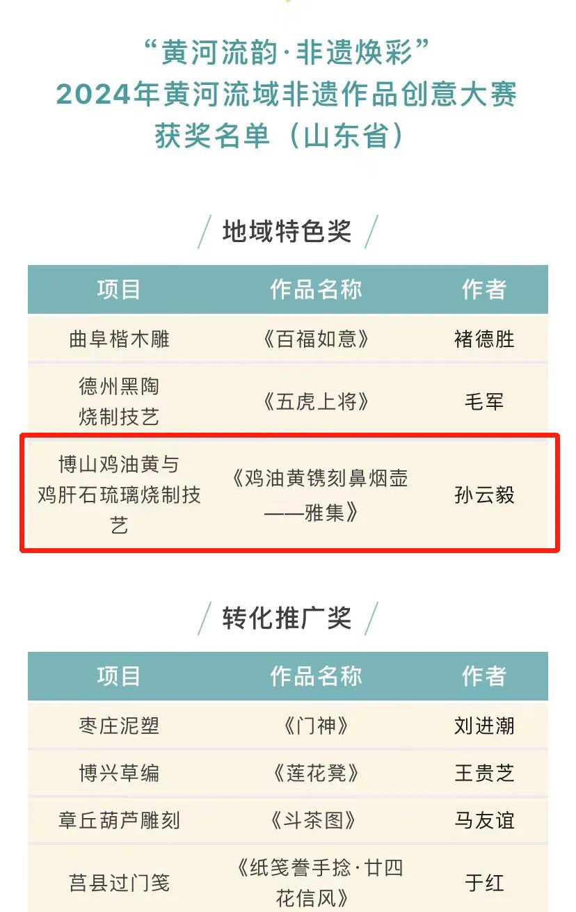 淄博推荐的鸡油黄作品在2024年黄河流域非遗作品创意大赛中斩获佳绩!