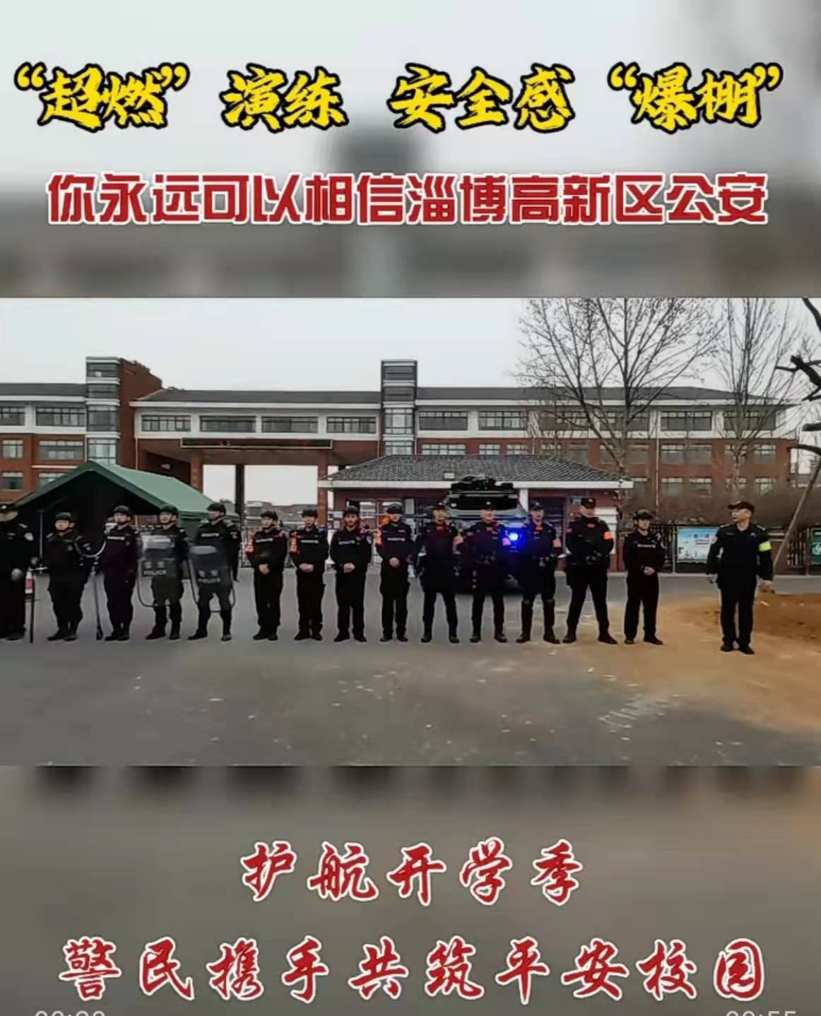 为进一步提高校园安全保卫能力,近日,淄博高新区公安开展“平安校园”安全演练。整个演练过程环节紧凑、处置迅速、规范有序,圆满完成了各项演练任务,达到了预期效果。(王婷 岳展)