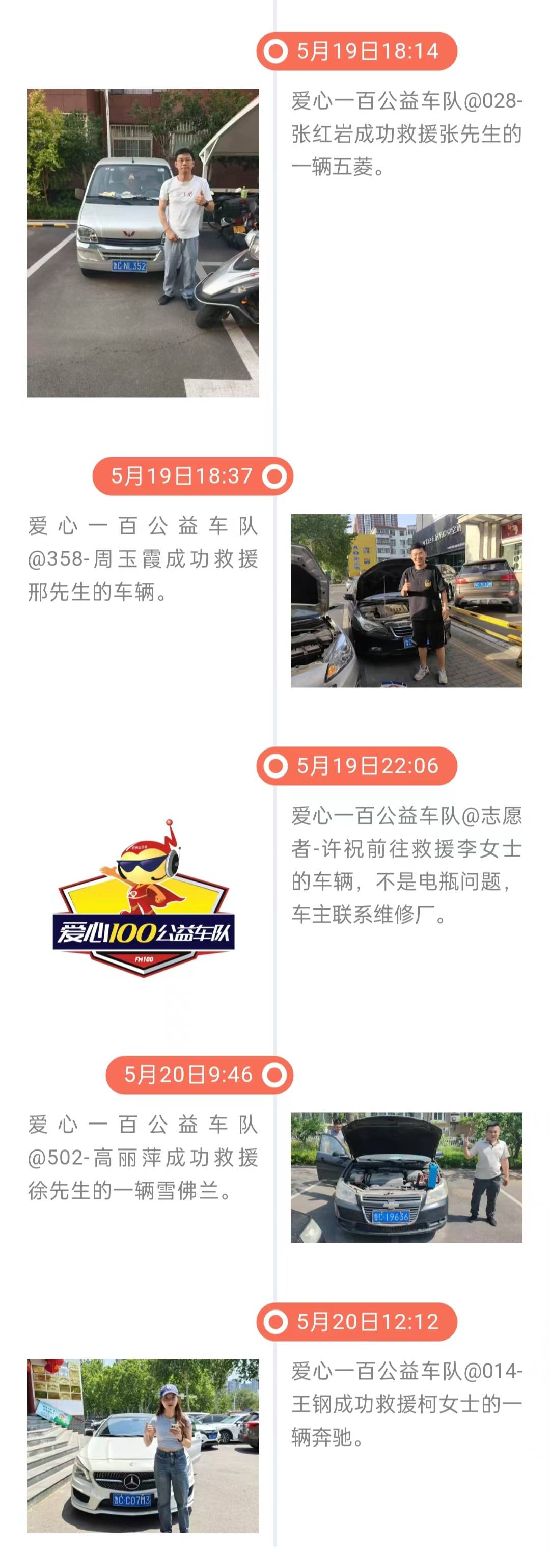 雷锋精神在淄博| 爱心一百公益车队5月20日救援日志