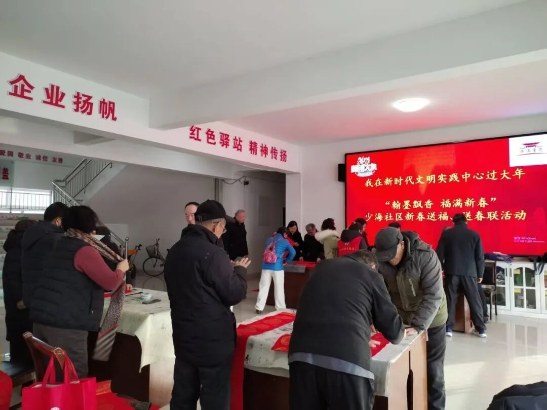 如果说手工活动传递的是巧思与乐趣,那么社区的写春联送福字活动,则饱含着更为深沉的文化底蕴与邻里温情。连日来,少海街道紫悦城社区、少海社区相继开展新春写春联送福字活动,为居民送上饱含文化韵味与美好期许的新春贺礼,提前勾勒喜庆年味。