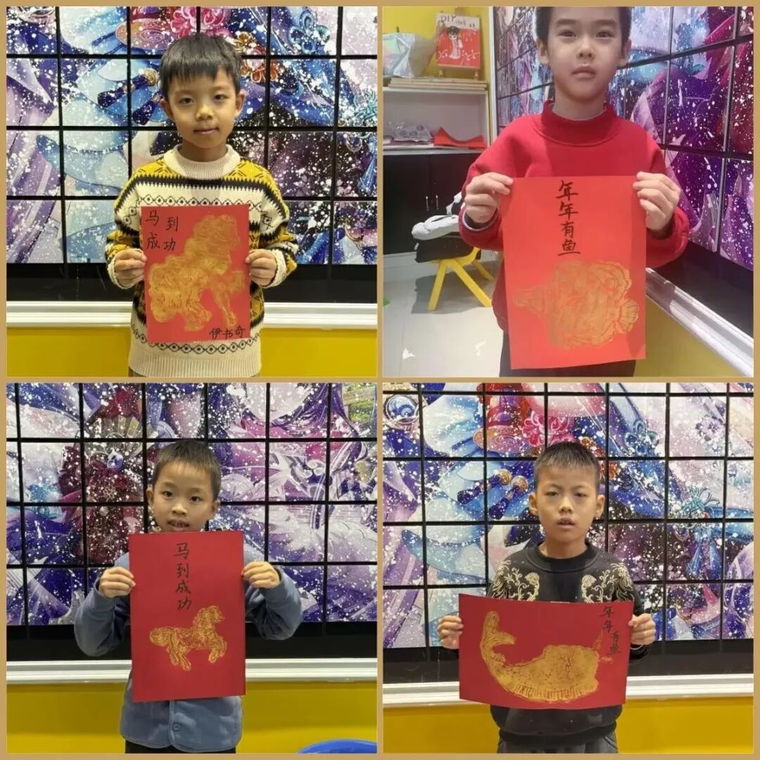“拓印是传统的非遗技艺,要先均匀上色,再轻压慢按,让纹样完整清晰地印在纸上才行。”美术老师耐心示范要领、细致答疑解惑,二十名少年儿童手握拓包,在吹塑板上认真拓印骏马、锦鲤、福字等新春吉祥纹样。孩子们在勾勒与拓印间,沉浸式感受手作的独特乐趣,更在墨韵留香中读懂非遗文化的厚重底蕴,让中华优秀传统文化在指尖传承、在童心扎根,为马年新春平添一抹古韵新风的亮色。