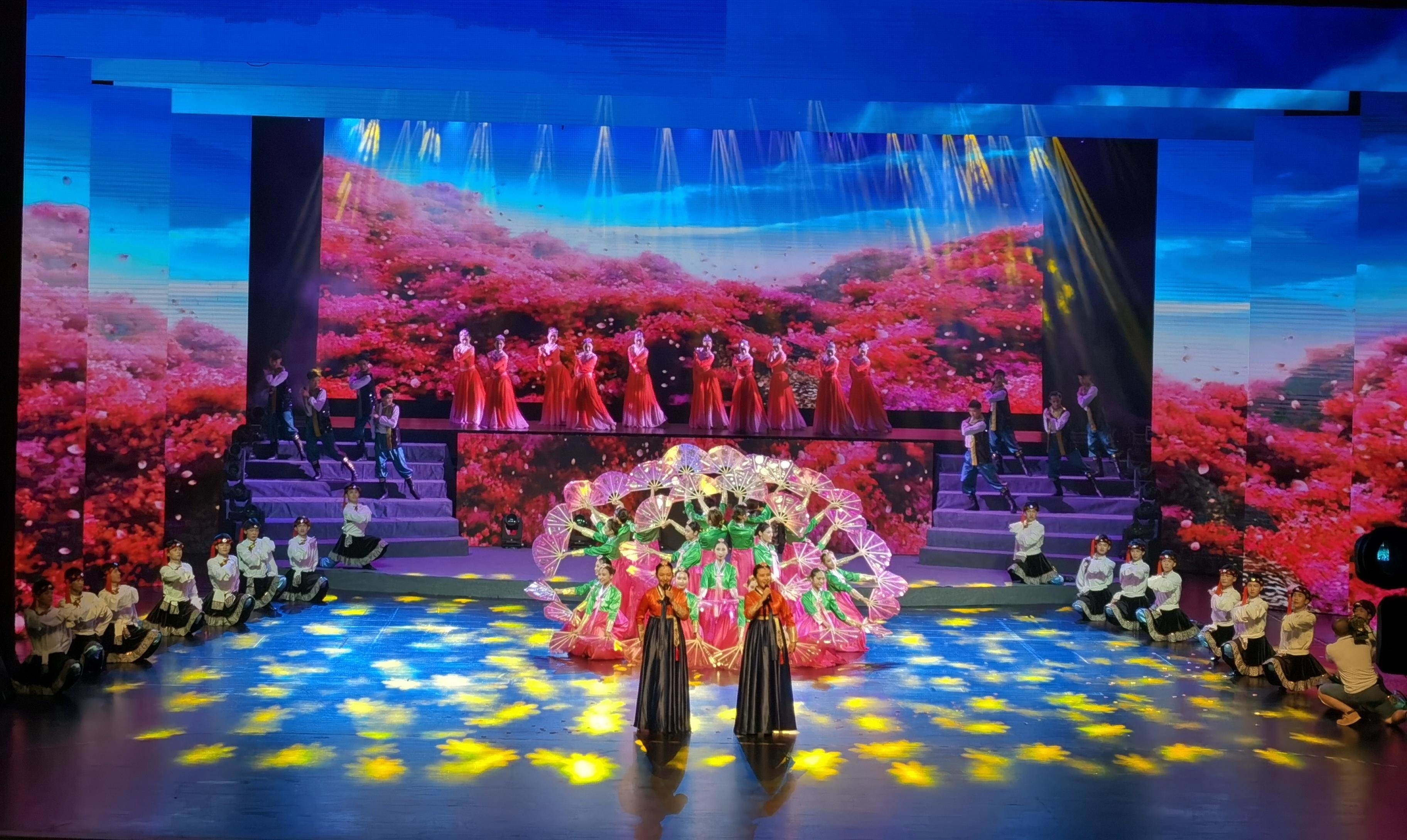大型歌舞《再一次出发》展现了淄博在新征程中,担当作为,凝心聚力促发展、乘势而上开新局的信心和决心。最后,大家齐声歌唱《没有共产党就没有新中国》,手中的红旗随着节奏挥舞,舞台上下汇成一片红色的海洋,演出在大合唱中圆满落下帷幕。