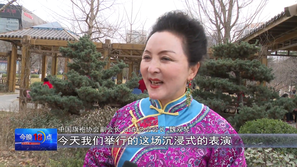 中国旗袍协会副会长 山东总会会长 魏双琴:今天我们举行的这场沉浸式的表演,带给了市民这种美感的同时,让我们把华服文化、旗袍文化得到了更好的提升和发扬。