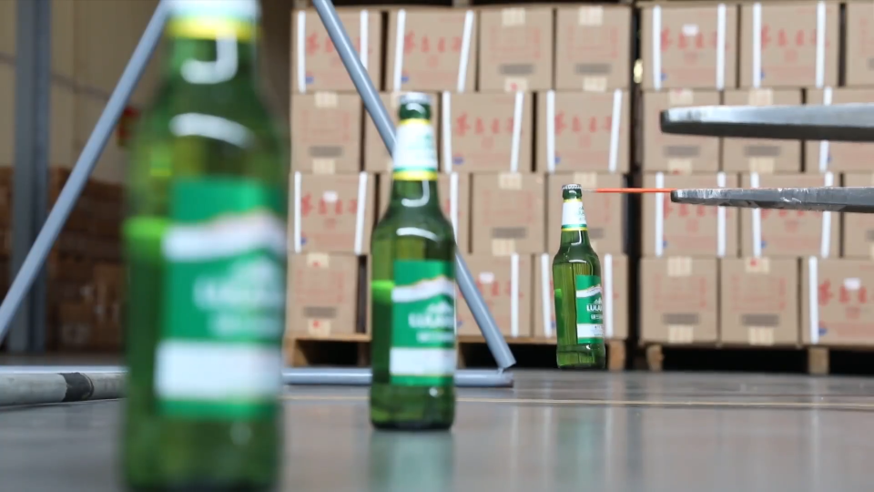 山东新星集团物流中心叉车主管 张学星:挂酒瓶的难度非常大,挑子一定看着那个瓶盖,看不清楚的话就挑不起来,再一个往钢丝上挂的时候,如果说那个距离,远了不行,近了也不行。