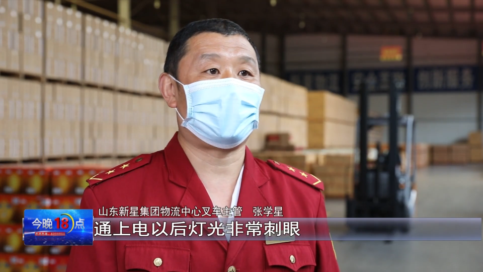 山东新星集团物流中心叉车主管 张学星:通上电以后,灯光非常刺眼,照得我们叉车司机的眼睛都看不清楚了,难度更高了,技术要求也更高了。