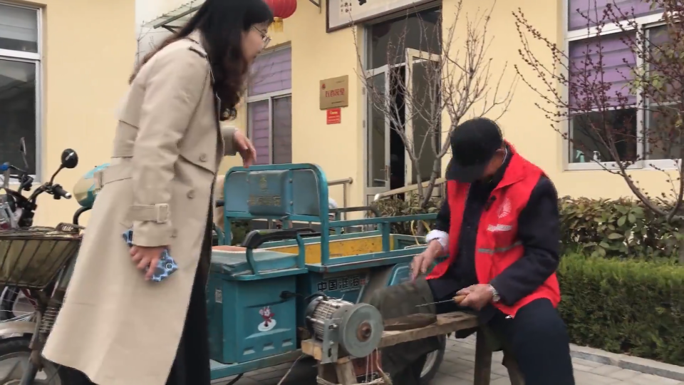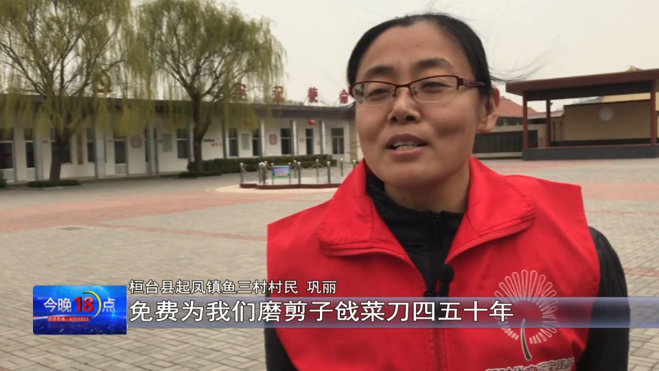 桓台县起凤镇鱼三村村民 巩丽:崔兴州大爷免费为我们磨剪子戗菜刀四五十年,是我们村一笔宝贵的财富,作为年轻一代村民,我们要把这种志愿精神传承下去。