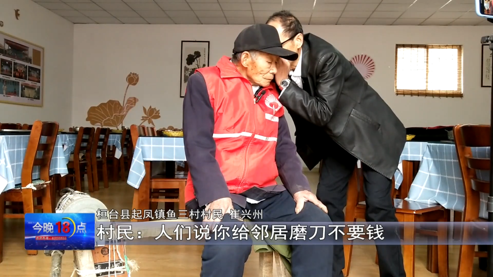 如今,每天中午都能在村里的长者食堂免费吃上自己磨得刀切出来的菜肴,崔兴州说,他很满意、很知足!