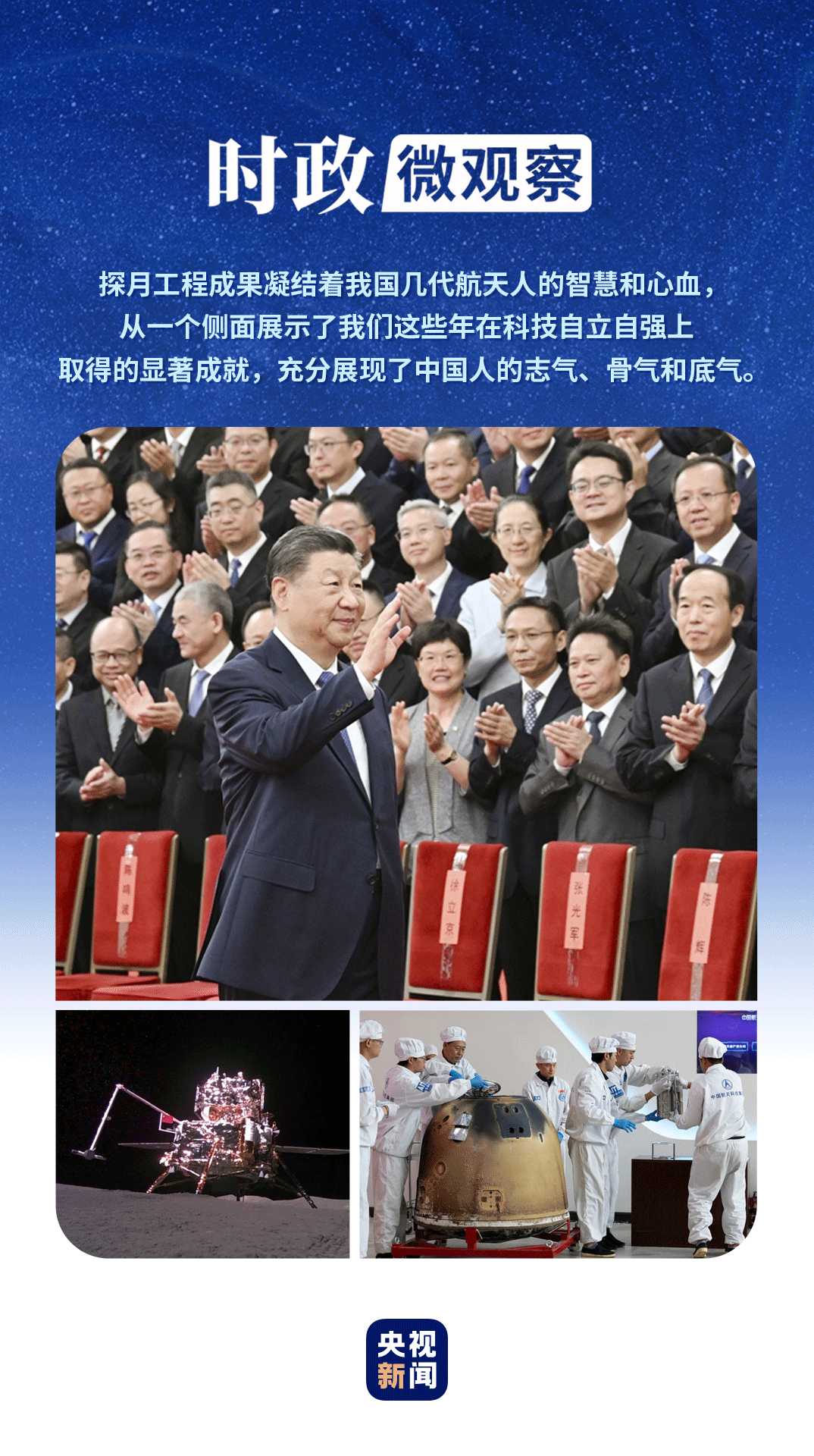 探月精神是中国航天人和无数科研工作者自立自强、勇攀科技高峰所铸就的伟大精神,是我国航天事业不断取得新胜利的精神动力。
