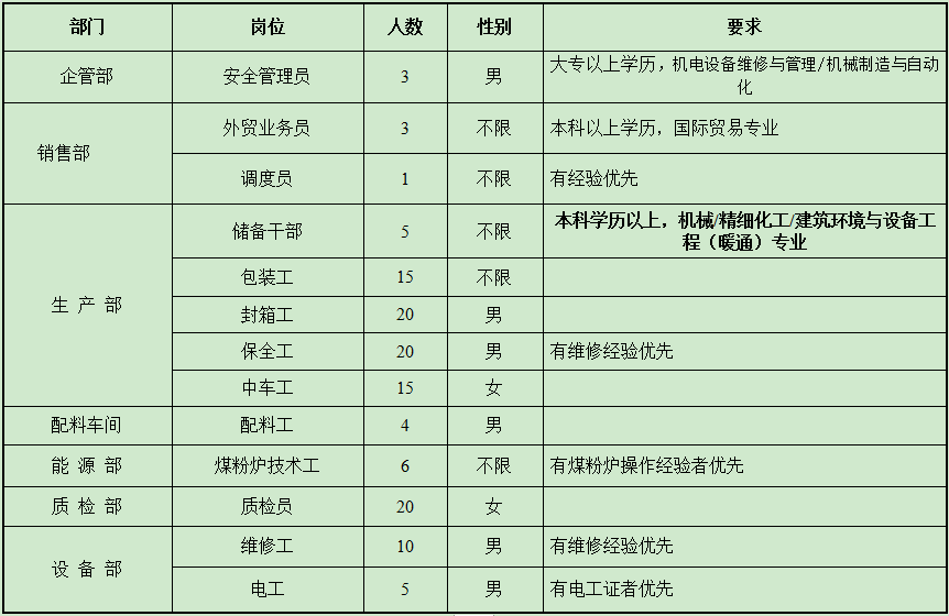 山东恒昌医疗科技股份有限公司 招聘127人 山东恒昌医疗科技股份有限公司成立于2003年8月,现有职工600人,主要生产各种型号的PVC检查手套,包括医用手套和卫生防护手套。公司具有自营进出口经营权,产品主要销往美国、日本、英国、法国、意大利等多个国家和地区,现因公司经营发展需要,特招聘以下岗位员工: 招聘岗位 具体要求