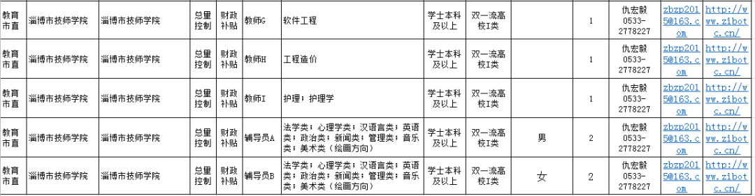 淄博市技师学院招聘18人