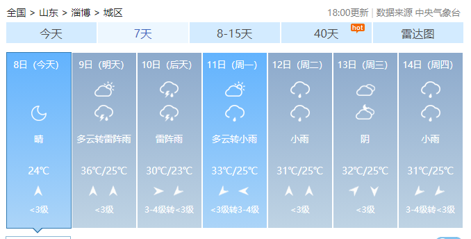 淄博市气象局8日17时发布重要天气预报