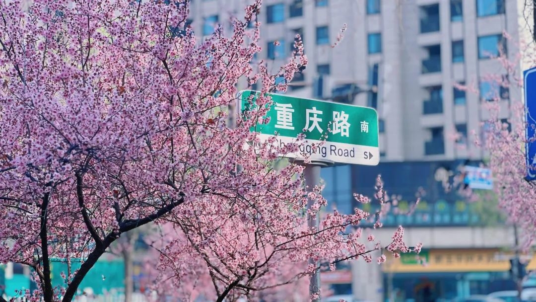 淄博街头处处春意盎然