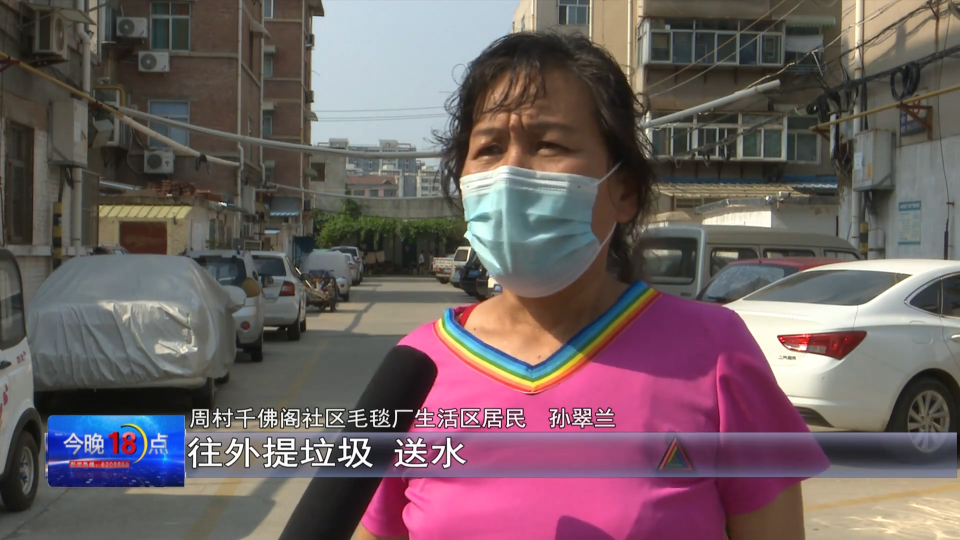 周村千佛阁社区毛毯厂生活区居民 孙翠兰:疫情当中不可能出来了,舒哥就跑到家里去,往外提垃圾,送水,各方面做得确实很好。不管是五楼几楼,一趟一趟地送。