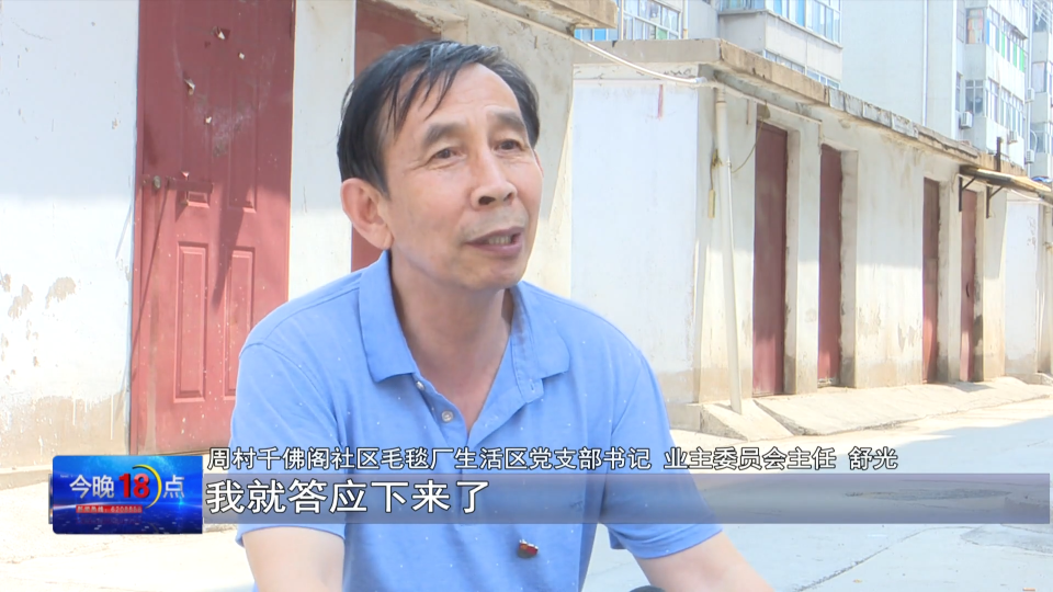 周村千佛阁社区毛毯厂生活区业主委员会主任 舒光:社区书记让我上她办公室,多次找我,我都不愿意干。说着说着哭开了,那意思,叔啊,你咋着也得帮帮我。你得答应就行,我就答应下来了。