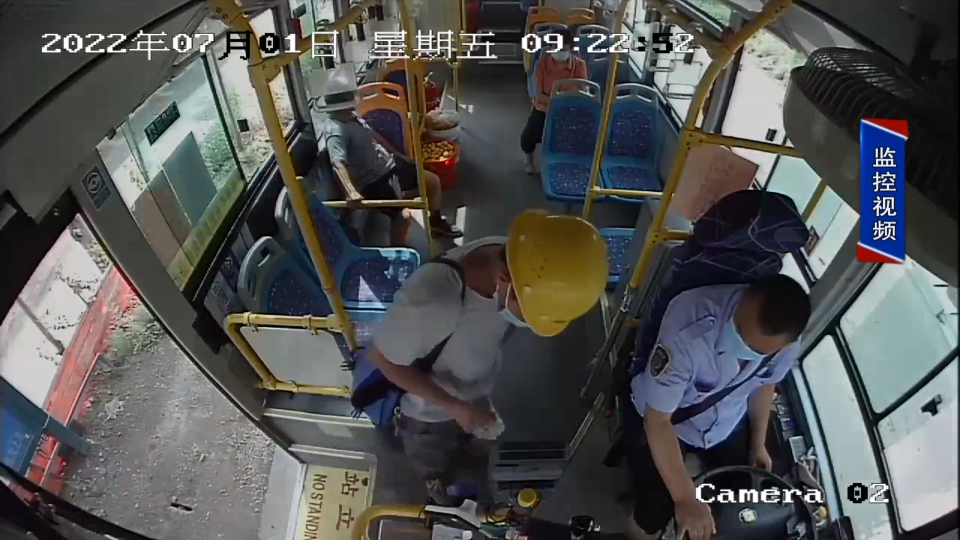 当天上午9点22分,33路公交车车长袁恩涛驾车行至张炳站时,一名建筑工人模样的乘客捂着腹部艰难地上了车。上车后,就倒在后排的座椅上。途中,该乘客表情非常痛苦,这引起了袁恩涛和其他乘客的注意。