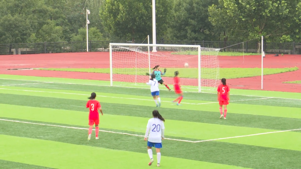 山东省第十五届中学生运动会淄博女足代表队教练 李家豪:孩子们在炎热的天气下,还有这种大雨的天气下,能够顽强地拼搏,互相地鼓励,并且面对困难能够勇敢面对,能克服困难,勇往直前。