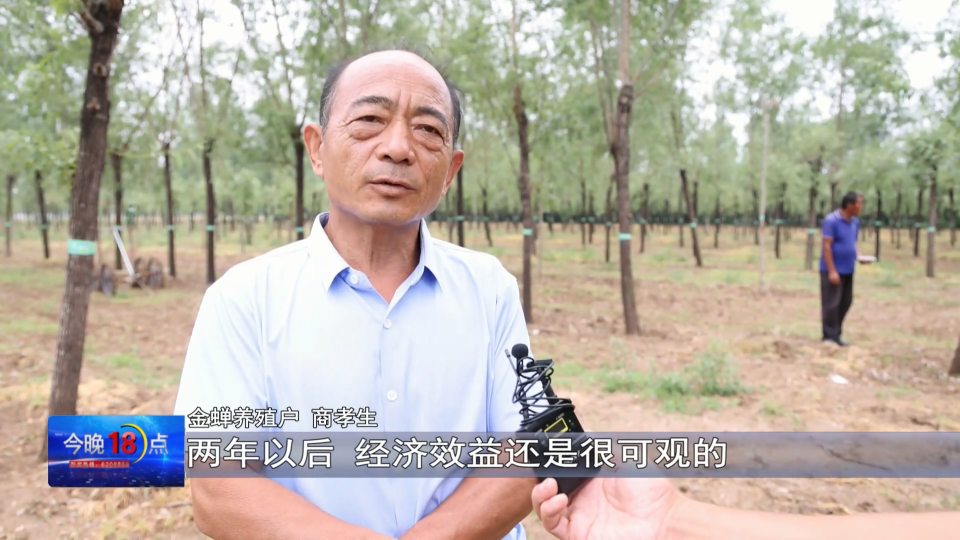 金蝉养殖户 商孝生:主要是费工少,费力少,不跟种庄稼一样。这个洒上以后基本不用管了,干旱了洒点水就不用怎么管了,两年以后,经济效益还是很可观的。