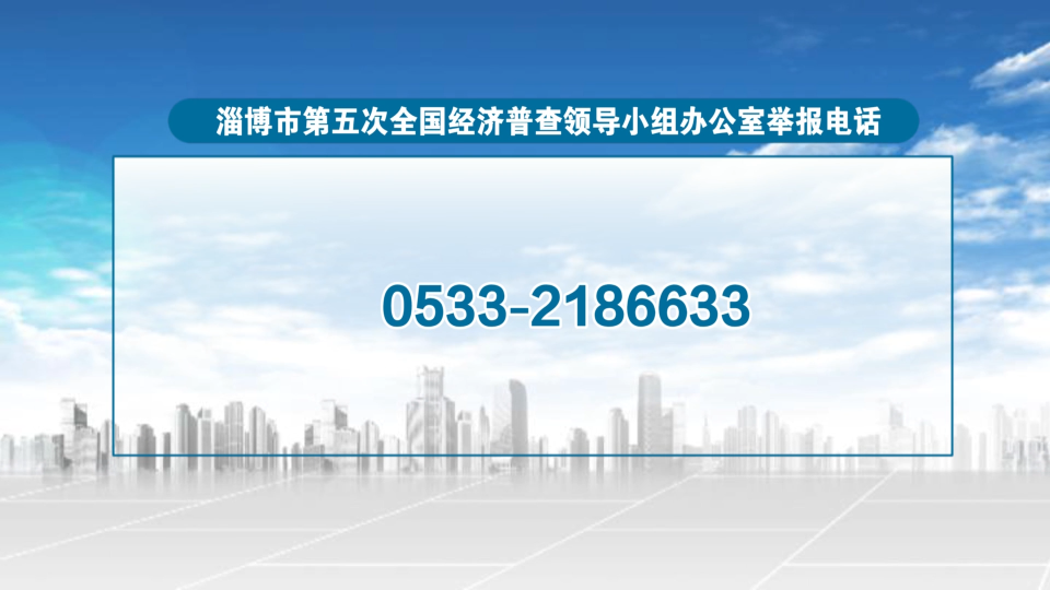 淄博市统计局党组成员 市普查调查中心主任 王辉:请各位普查对象积极配合普查人员的工作,放心、及时提供真实准确的信息。普查机构或普查人员如有违法或损害您单位利益的情况,请及时向淄博市第五次全国经济普查领导小组办公室举报。