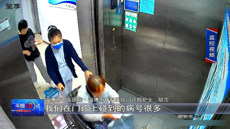 淄博市中医医院·淄博市骨科医院门诊部护士长助理 李辉:我正好领着病号刚做完检查,要回门诊楼,这时候远处走来一个阿姨,拄着木棍,一瘸一拐,我就问阿姨,你是咋啦?她说脚扭伤了还是腰扭伤,阿姨说她是自己来的,我说那你别走了,你这样行动不便,我说我们门诊现在搬到这边来了,南边二楼,我说你等着我给你打个电话,让他们接你吧。