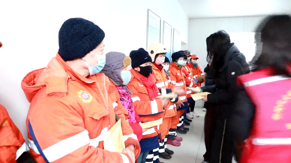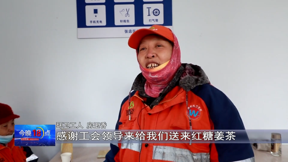 环卫工人 房玉香:感谢工会领导来给我们送来红糖姜茶,让我们喝了心里暖和和的、热呼呼的。
