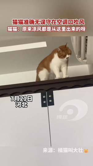 猫猫准确无误守在空调口吹风