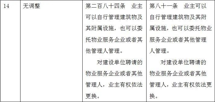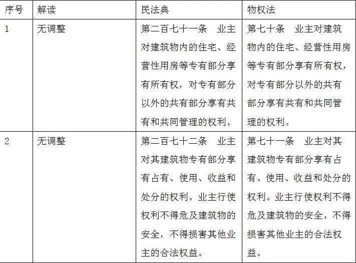 原物权法中涉及业主权利的"业主的建筑物区分所有权"章节一共14条。而即将施行的《民法典》"业主的建筑物区分所有权"一共17条。