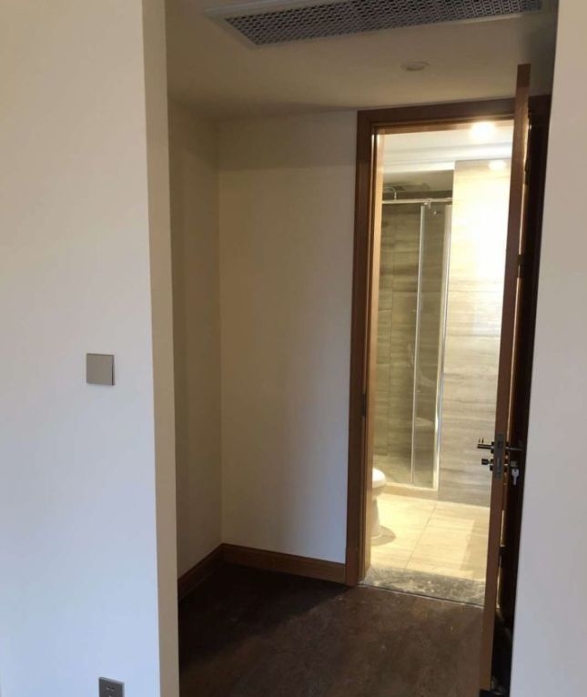 对于个别带主卫的户型,像下图这种,如果从卫生间出来的过道足够宽,那就可以砌多一面墙,这样在卫生间门口就可以有一个衣帽间了。