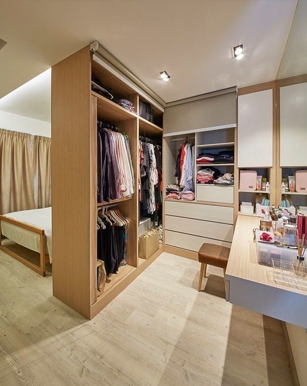 如果空间足够,还可以设计一个多功能柜体,增加一个梳妆台,简直稳稳的幸福。