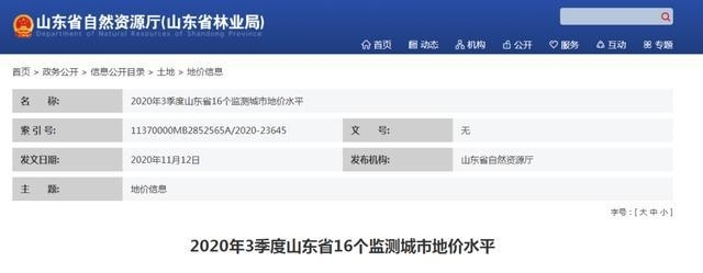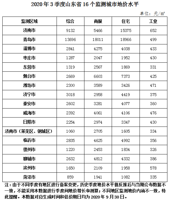 重磅!2020年3季度山东16地市地价出炉!