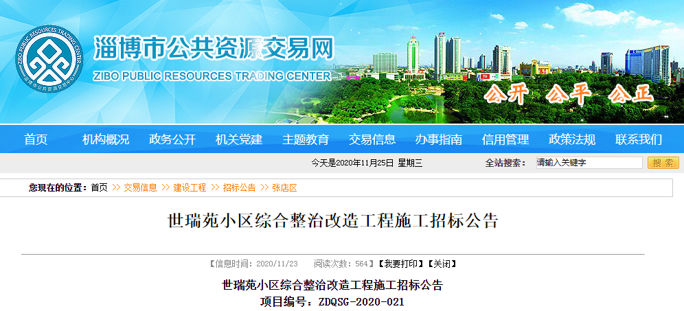 本招标项目世瑞苑小区综合整治改造工程由淄博市张店区发展和改革局,以张发改项审(2020)28号文批准建设,招标人为张店区人民政府科苑街道办事处,建设资金来自自筹,项目出资比例100%。项目已具备招标条件,现对该项目的施工进行公开招标。