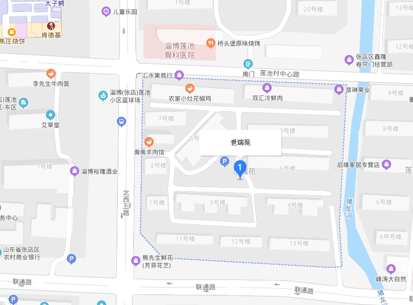 世瑞苑位于位于张店联通路以北,莲池中心路以南,猪龙河以西,西五路以东,在西五路仅有一个出入口,属封闭小区。小区建成于1995年,共有13栋多层住宅,540户,占地36000m²,建筑面积57800m²。