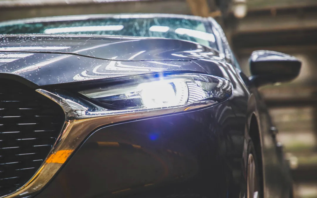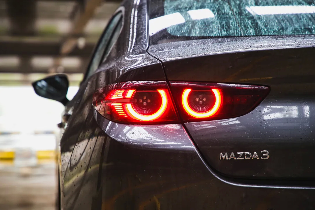 盾形主动开闭进气格栅的尺寸更为夸张,利于暖机的同时,熏黑涂装搭配魂动之翼镀铬饰条也在视觉效果上显得气场十足。LED远近光源全系标配,柳叶式的灯组在发动机舱盖的映衬下目露“凶光”,识别度极高。