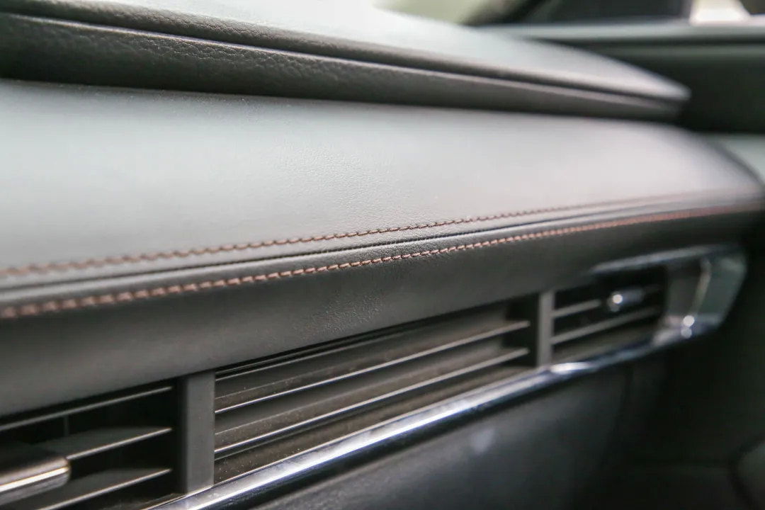 极简风是当下流行的内饰方案之一,马自达以减法美学为设计理念带来了一套独特的“日式轻奢”布局。去繁从简的设计理念贯穿始终,没有太多浮夸的设计,反倒是平直的线条元素增添几分素雅之感,双缝线以及真皮包裹的细节处理体现马自达的匠心。
