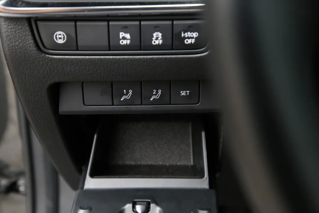 座椅记忆功能同样没有缺席,按键下方则是一个迷你储物格,狭小的空间换来的是紧凑的布局与高效的利用率,这点真的很日本。