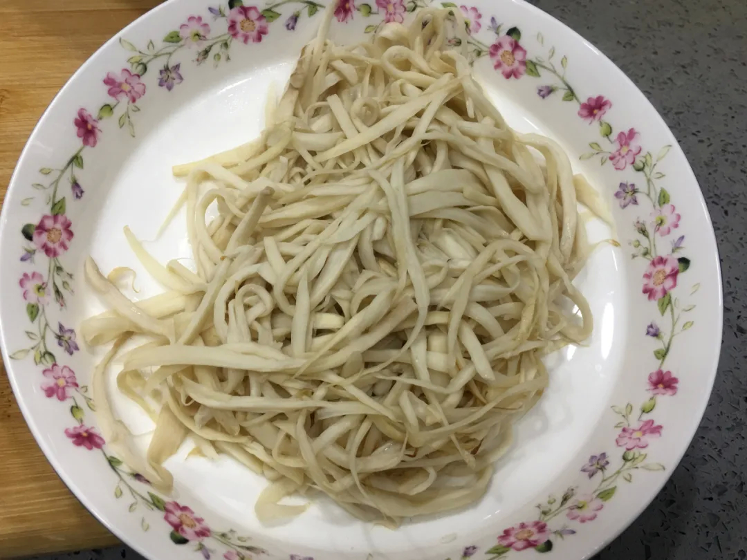 首先要把杏鲍菇撕成小条,