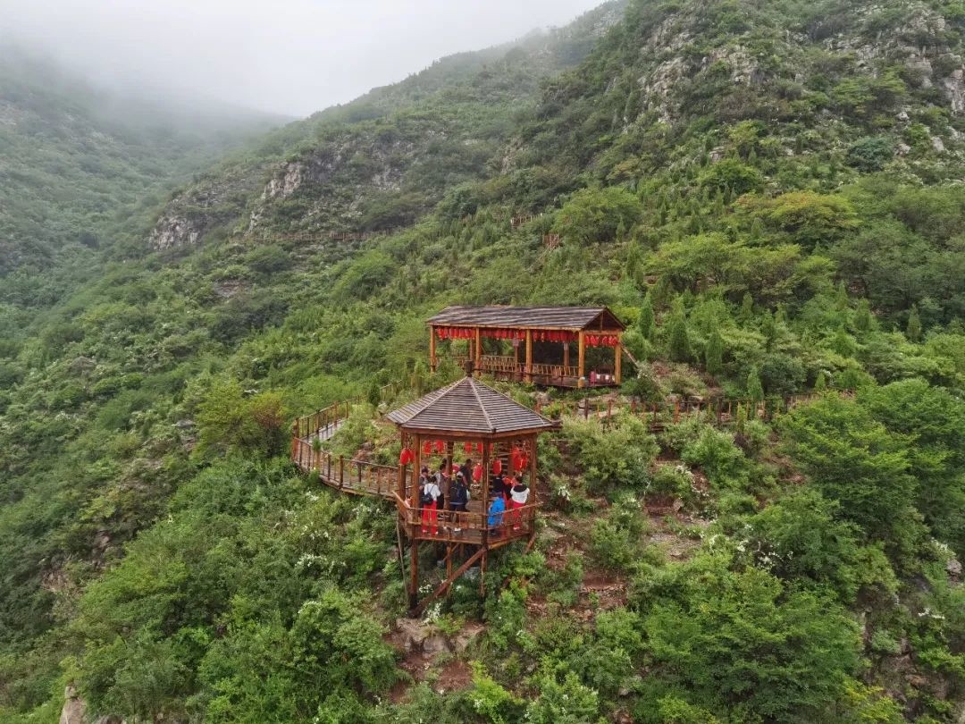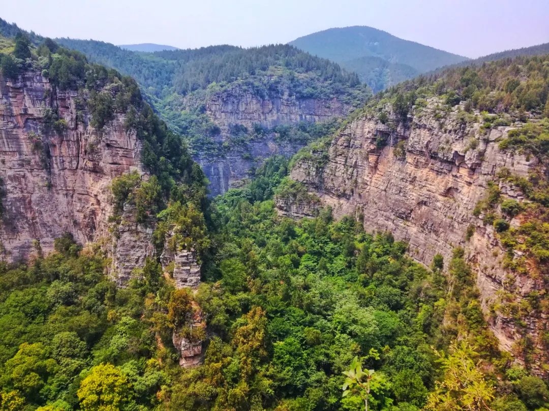 被称为“北方的九寨沟”的潭溪山景区,奇峰峭壁,站在山顶更是万千山涛扑面而来。