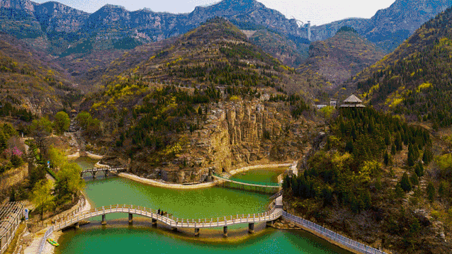九如山雄奇秀丽的山水美景,丝毫不输九寨沟的风韵,这里群山连绵,卓异多姿,俏石跌落为深壑幽谷,更有多家风格各异的山间民宿,别有一番风味。