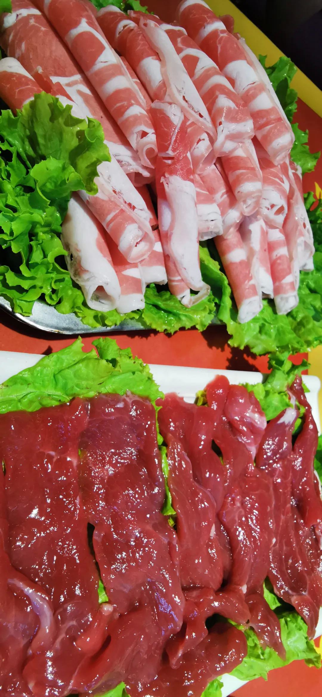 冰激凌, 爆米花,水果以及小零食都是免费的,小料区18种调料6元每位,但是吃火锅最重要的还是吃肉,这肉来自内蒙古通辽市,排酸的羔羊肉非常正宗,肥瘦相间。
