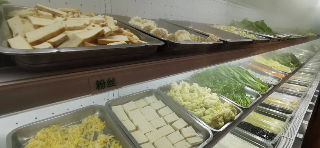 火锅大厅同时200多人就餐没有问题,还有7个房间,很多食材你可以自己选择,是自助的形式。每位7元部分菜品随便选,一共40多个品种,都是每天采购最新鲜的,绿叶菜,菌菇类,海带, 魔芋,等品种很齐全。